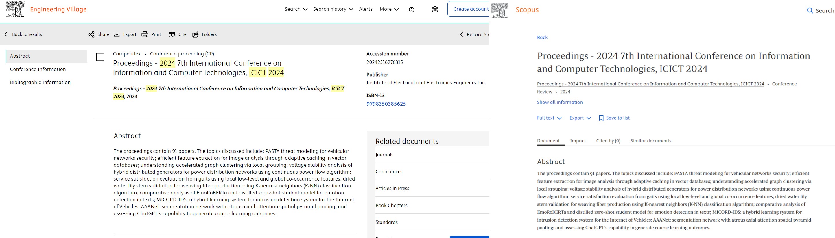 ICICT 2020,ISBN: 978-1-7281-7283-5 (online), Ei & Scopus index ICICT 2019, ISBN: 978-1-7281-3322-5 (online), Ei & Scopus index ICICT 2018, ISBN: 978-1-5386-5382-1 (online), Ei & Scopus index |