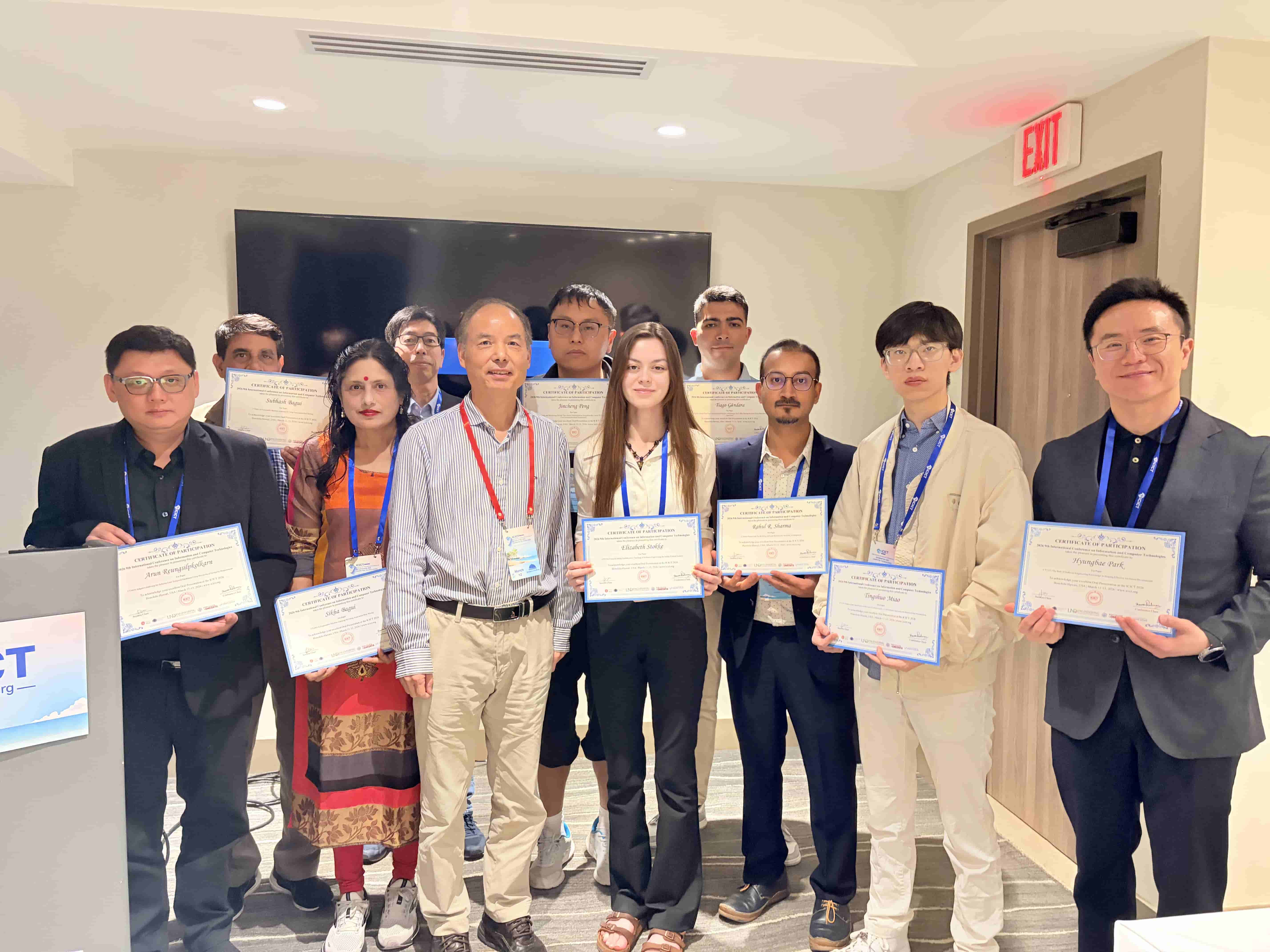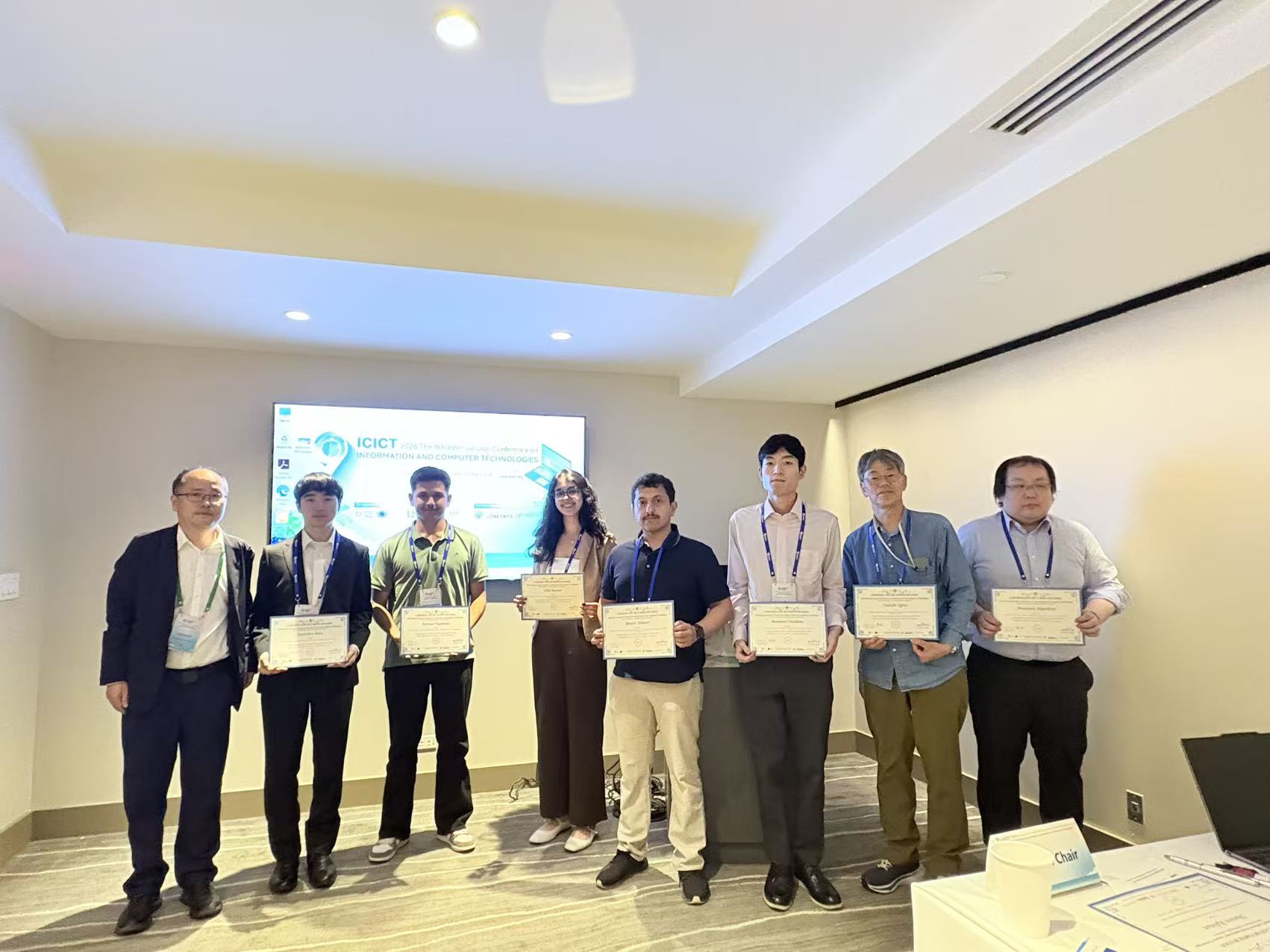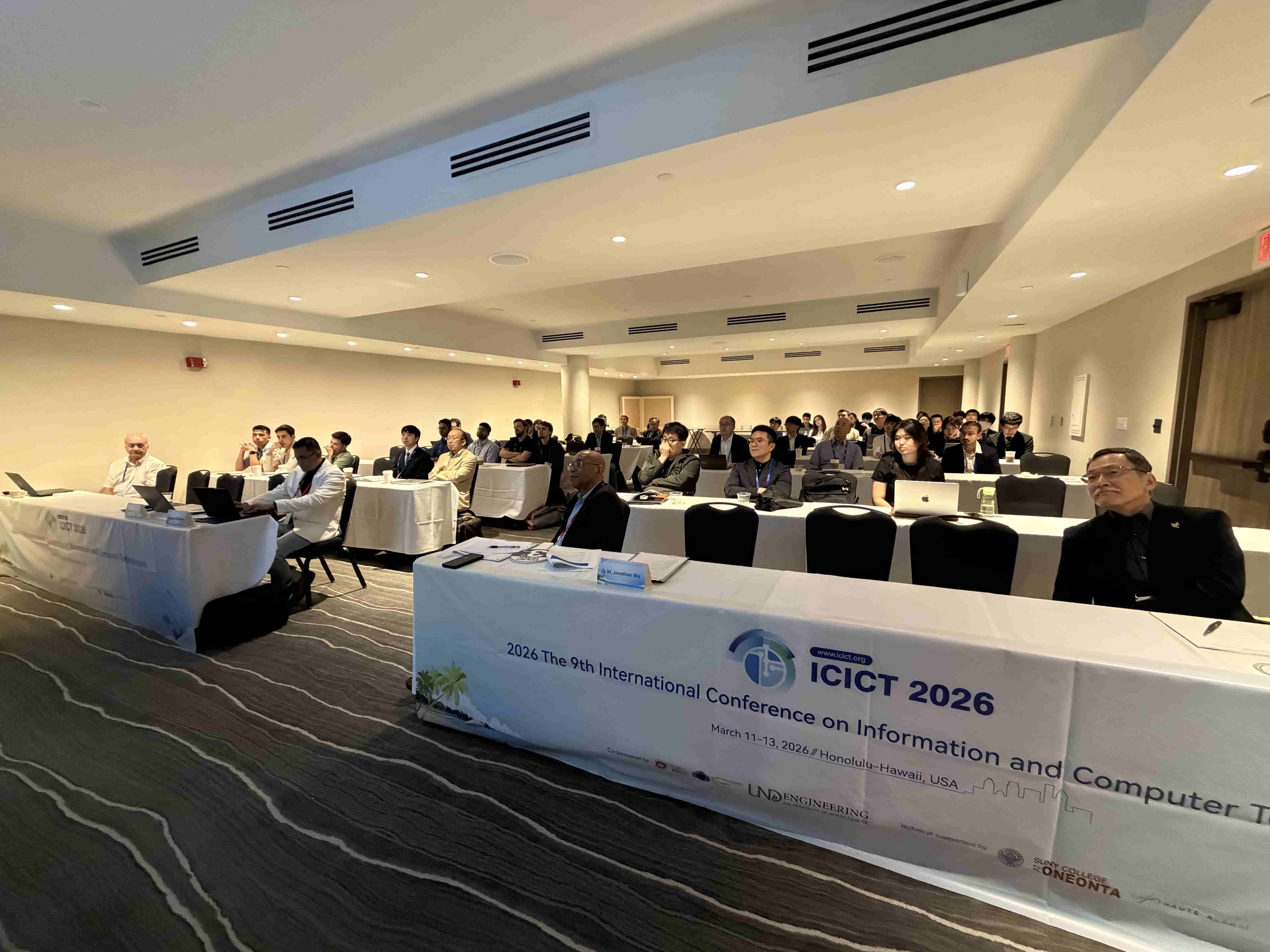 ICICT 2026 – The 9th International Conference on Information and Computer Technologies was successfully convened, with over 100 participants representing diverse countries and regions. The conference program included two distinguished keynote speeches, a Best Student Paper Competition, six parallel sessions, and four online sessions. The thematic scope encompassed Image Processing and Computer Vision; Natural Language Processing and Large Language Model Technologies; Software Engineering, Data Engineering, and Human-Computer Interaction; Foundational AI Theory and Interdisciplinary Applications; as well as Network and Information Security (including Wireless Networks and AI Security). During the conference banquet, the Conference Chairs officially announced the recipients of the Best Student Paper Award and six Best Oral Presentation Awards.