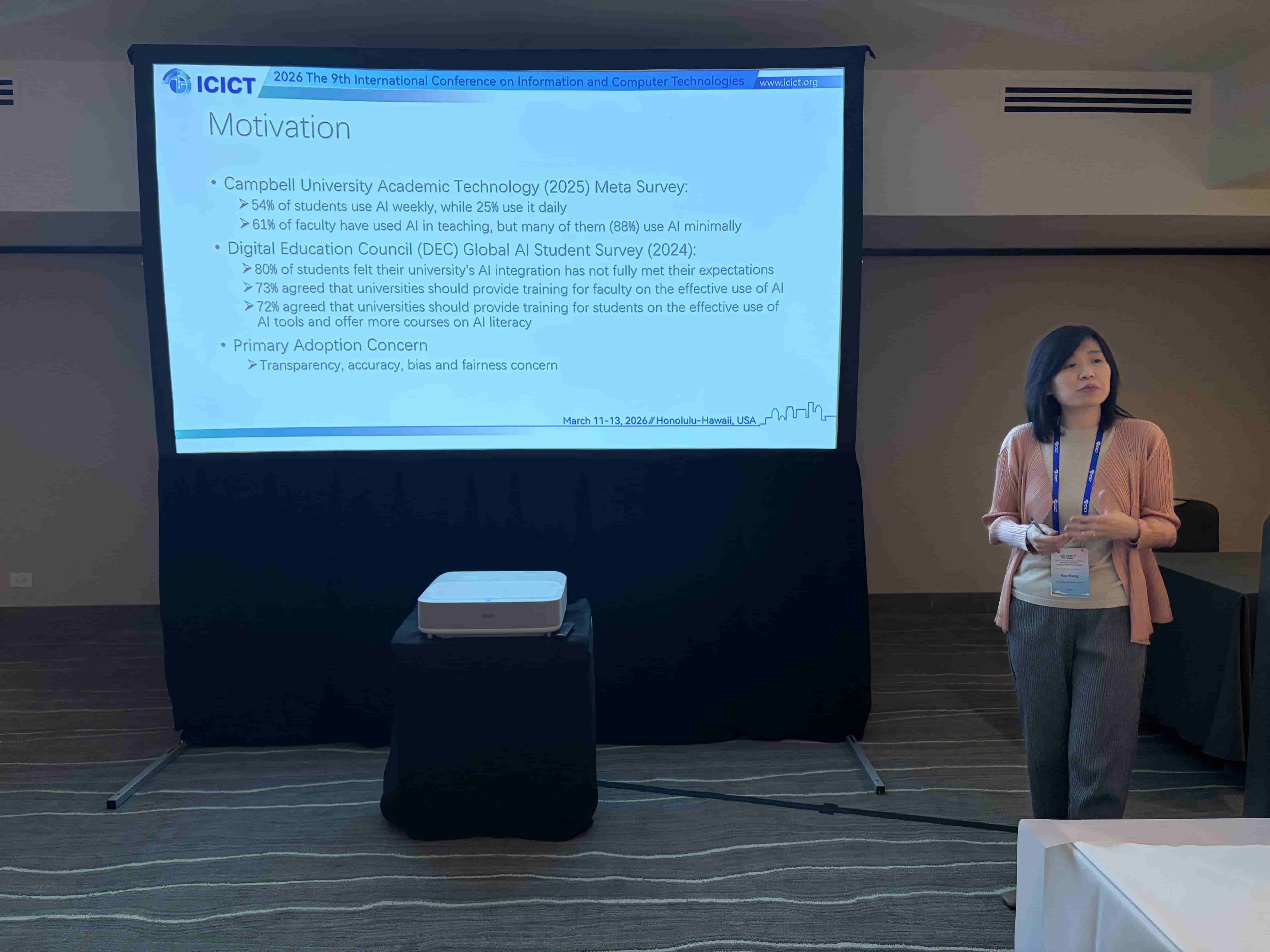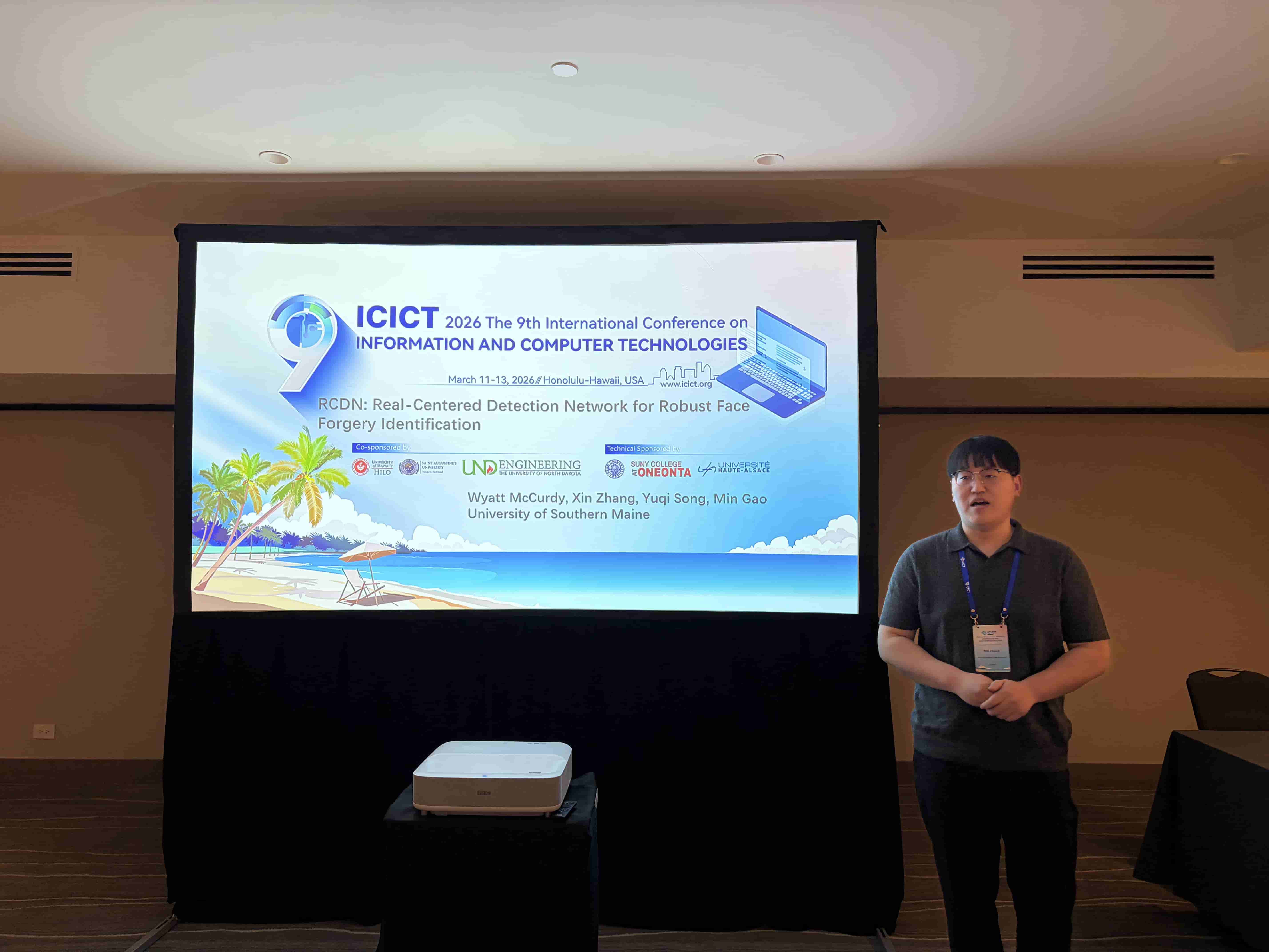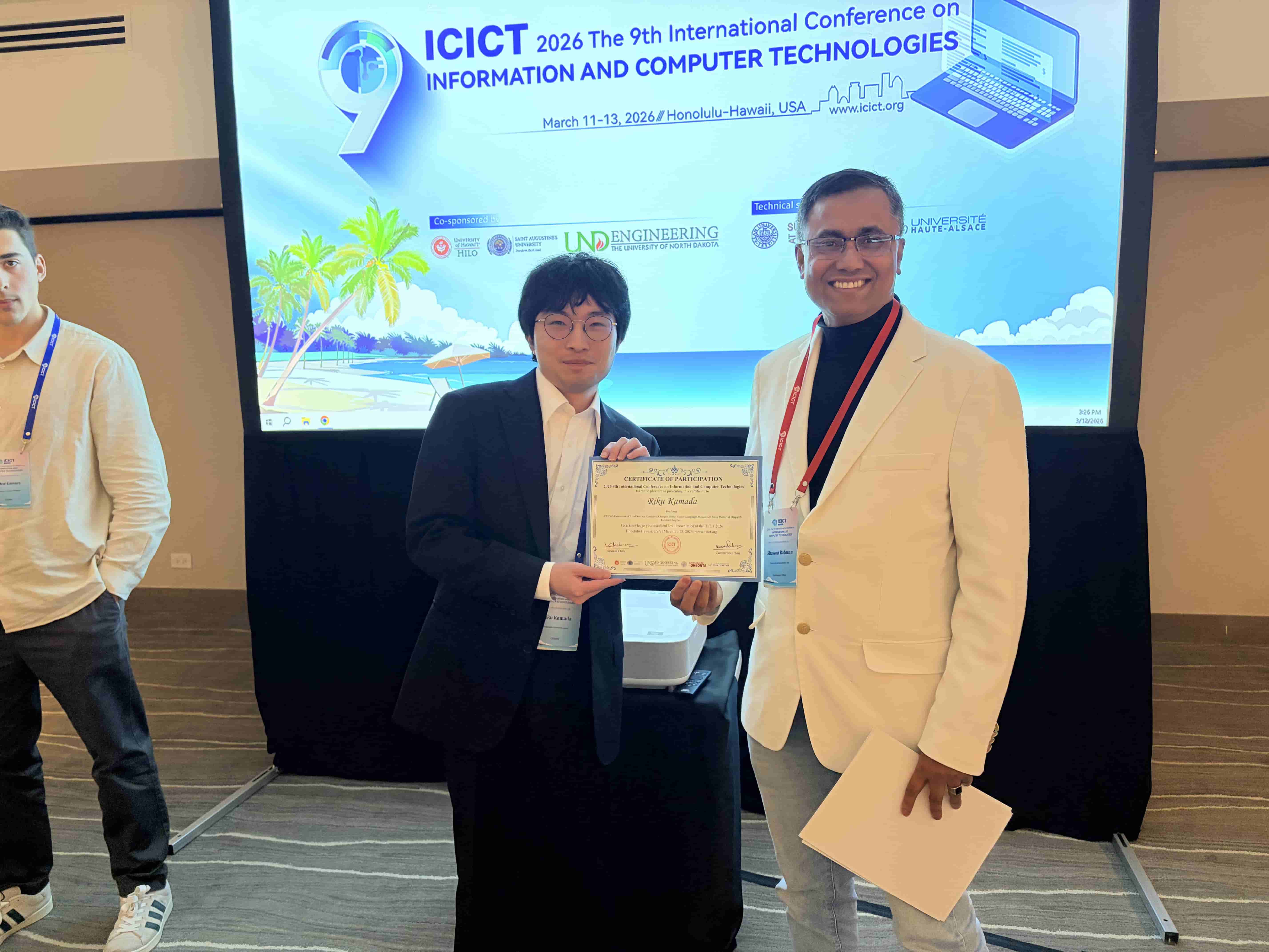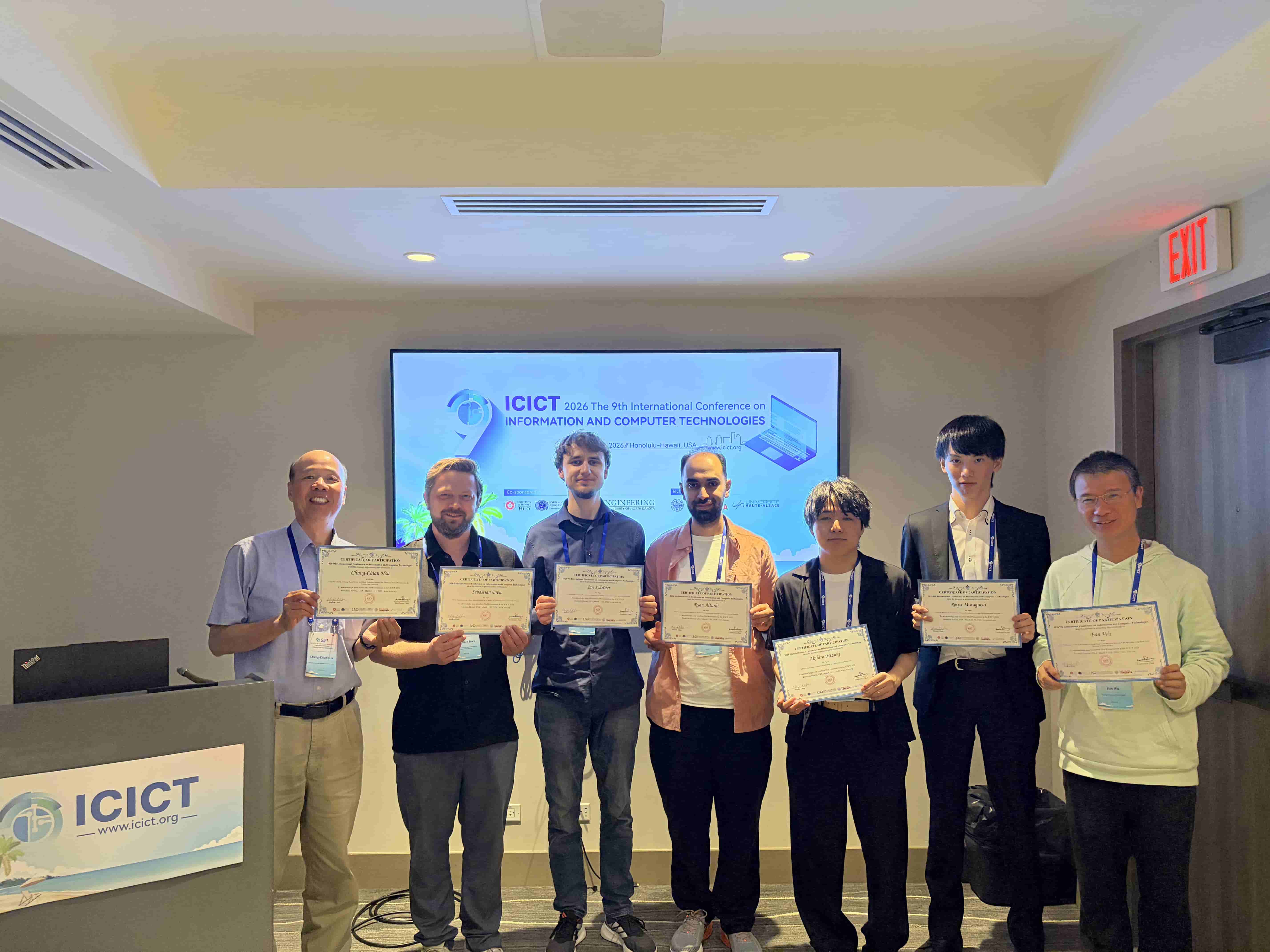 ICICT 2026 – The 9th International Conference on Information and Computer Technologies was successfully convened, with over 100 participants representing diverse countries and regions. The conference program included two distinguished keynote speeches, a Best Student Paper Competition, six parallel sessions, and four online sessions. The thematic scope encompassed Image Processing and Computer Vision; Natural Language Processing and Large Language Model Technologies; Software Engineering, Data Engineering, and Human-Computer Interaction; Foundational AI Theory and Interdisciplinary Applications; as well as Network and Information Security (including Wireless Networks and AI Security). During the conference banquet, the Conference Chairs officially announced the recipients of the Best Student Paper Award and six Best Oral Presentation Awards.